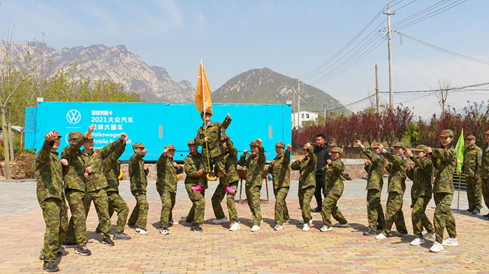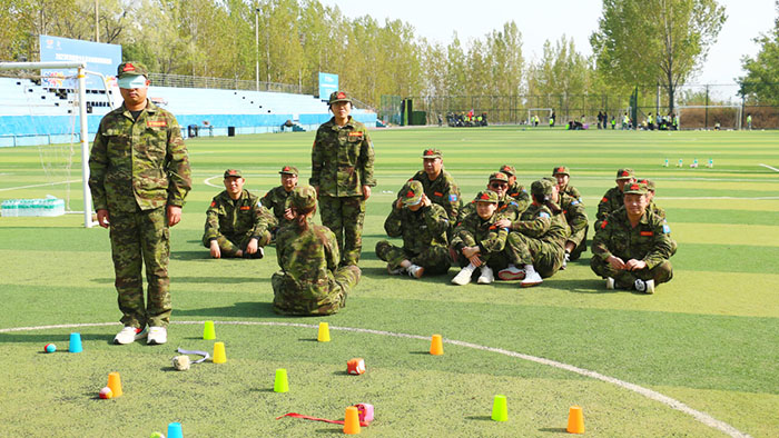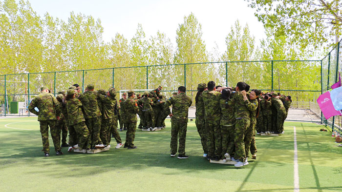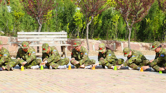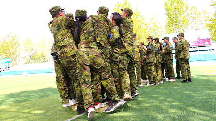 在【沙場點兵】項目,要求每個隊選出一個總指揮做將軍,一個協(xié)調(diào)者做軍師,剩余伙伴作為士兵。設(shè)定將軍起著總指揮的作用,但無法看見戰(zhàn)場的具體情況,其命令需由軍師來傳達。而軍師則只能用肢體語言告訴將軍該如何部署,士兵們則需要蒙著眼睛聽將軍命令,從而實現(xiàn)在沙場前進、攻擊。當規(guī)則定好,每個人所要做的就是各司其職。有人規(guī)劃部署,有人上傳下達,有人依命令行事,雖然有理解錯誤、聽錯命令的情況發(fā)生,大家還是玩得不亦樂乎。在這個項目中,大家感悟到正確溝通的重要性。