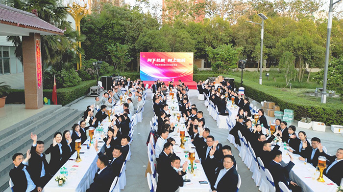 隨著一陣陣歡呼聲,家宴正式拉開序幕,董事長楚科奇及集團管理層共同登臺祝酒,為這個美好的歡聚時刻,與所有家人舉杯慶祝,F場華燈璀璨,笙歌高揚,家人滿座,笑語滿堂。
