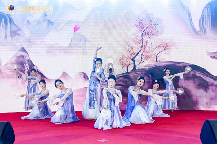 一場充滿未來感和創(chuàng)意的人屏互動視覺秀——《舞動青春》,讓大家體驗了科技與藝術(shù)的融合;一曲悠揚的《西樓別序》,伴隨著婀娜多姿的舞姿,帶領(lǐng)大家穿越千古江山,感受源遠流長的中華文化底蘊;簡短而富有內(nèi)涵的《三句半》,贊揚了集團各部門的辛勤付出和無私奉獻;手語舞蹈《國家》,于無聲中用雙手訴說對祖國的依戀和感激。